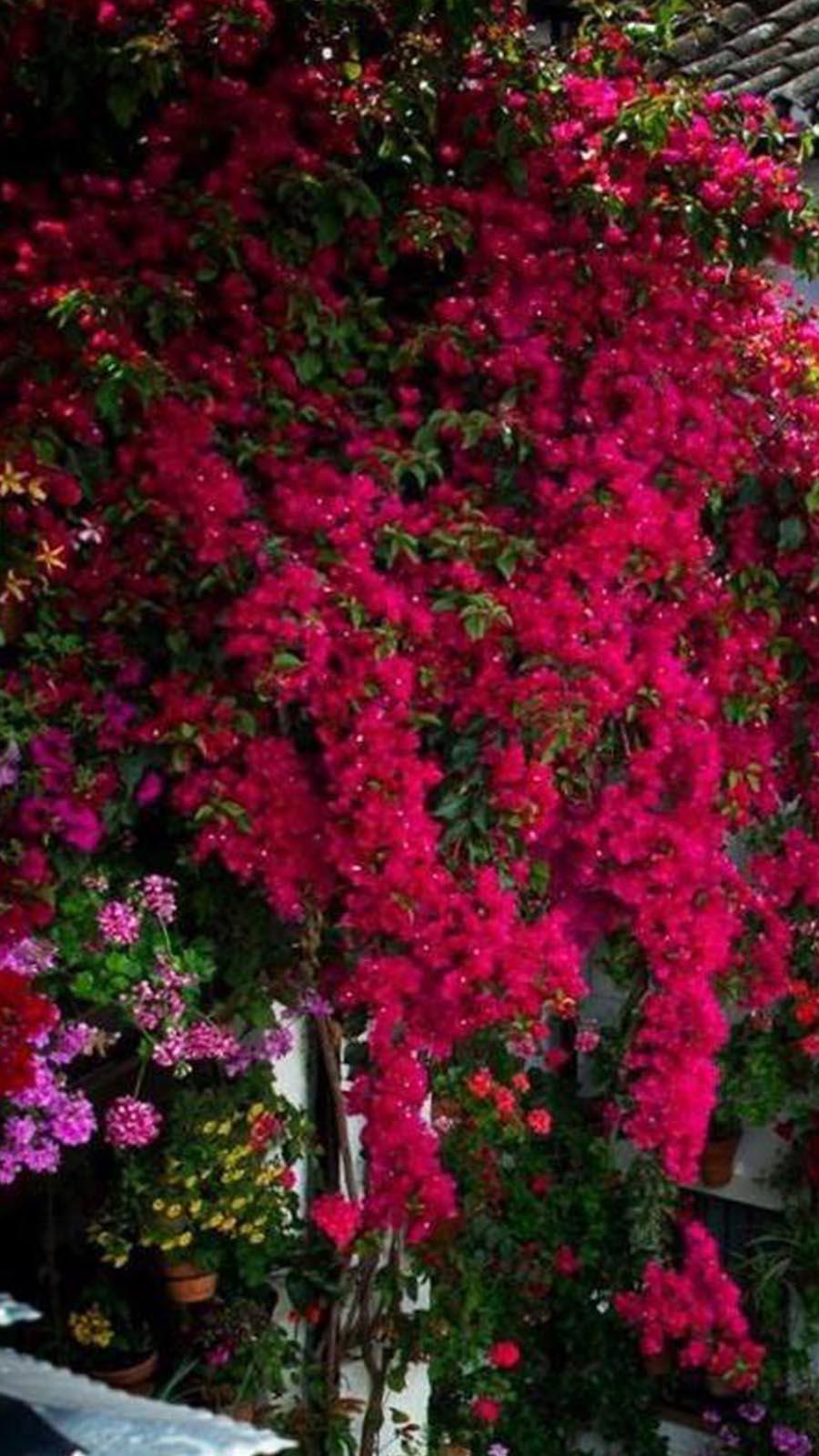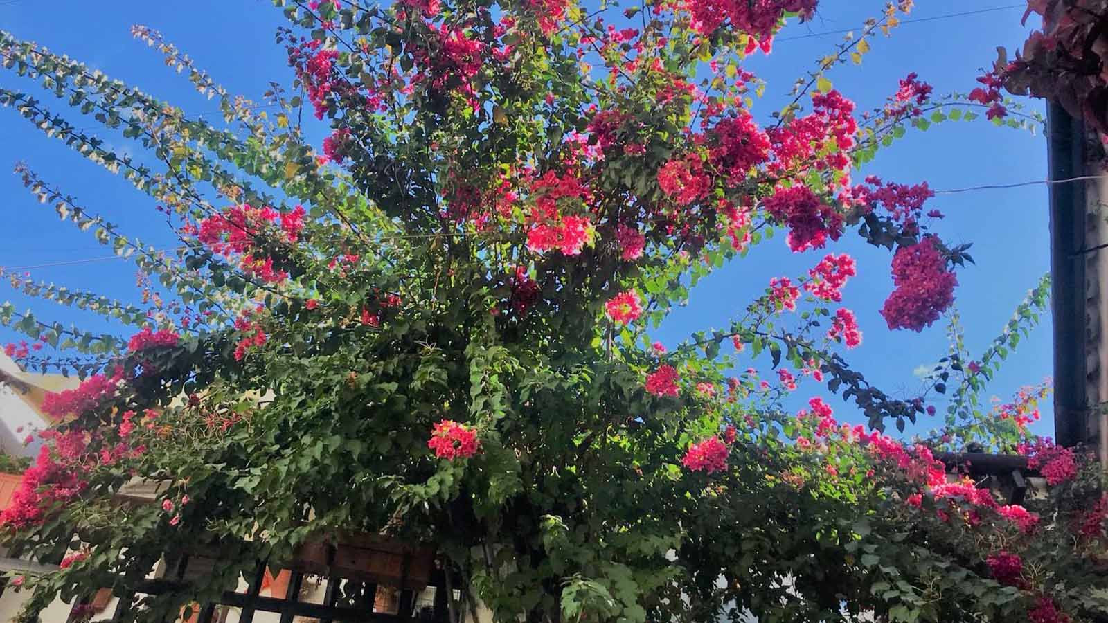 ??«Buganvilla»: Su tamaño y color la hacen una de las protagonistas de este patio. ¿Sabéis que esta en concreto tiene 4 años y se llama Rosa María?, ¡su historia es preciosa y de ahí que sea tan especial para ellos!. Fue sembrada el mismo día que nació Rosa María, hija de Rosita y nieta de Juan, el 30 de Abril de 2014. Al llegar a casa decidieron plantarla para que siempre tuviese la misma edad que la chiquitina de la casa y Juan preparó el hueco en el arriate para que Rosita la sembrase como «amuleto para su hija».